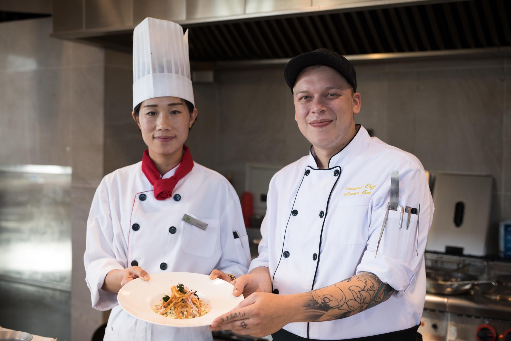 Ce cuisinier tatoué sur tout le corps est arrivé à Thaiwoo début novembre 2015, après avoir vu une annonce sur Facebook. «Cela a été le choc: rien n’était terminé, il n’y avait pas de restaurant, confie-t-il, en amenant des shots de Glühwein à une tablée de Chinois. Mais les ouvriers ont travaillé 24 heures sur 24 et tout était prêt deux semaines plus tard.»