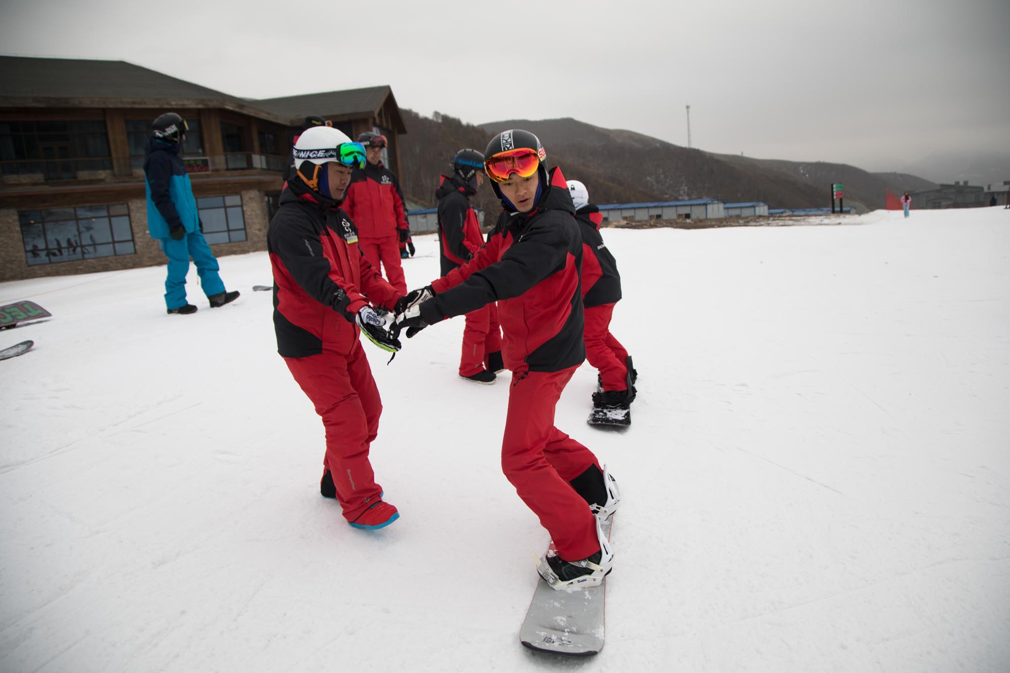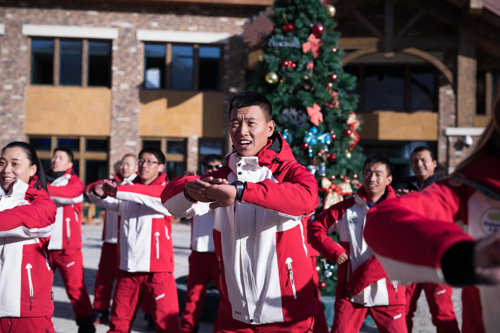 Sur la place au centre de Thaiwoo, une cinquantaine de moniteurs vêtus de tenues de ski rouges ou blanches se trémoussent sur une chanson de pop chinoise pour s’échauffer, les bras en l’air. Au milieu des visages chinois, on aperçoit plusieurs profils occidentaux. La station chinoise a conclu un partenariat avec la Compagnie des Alpes, une société qui gère une douzaine de stations en France, dont Chamonix.