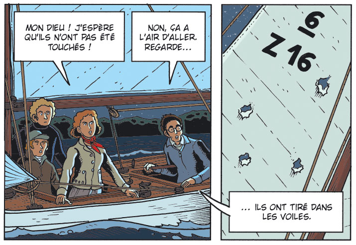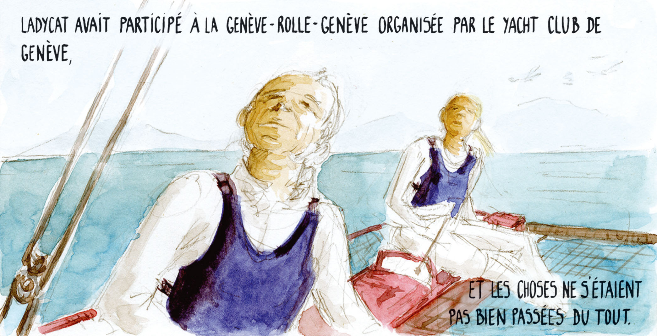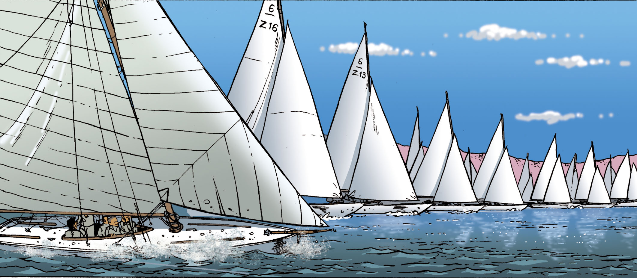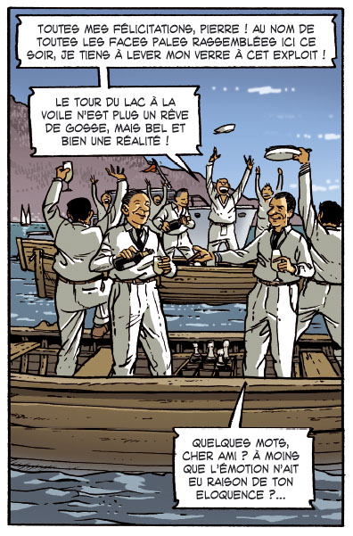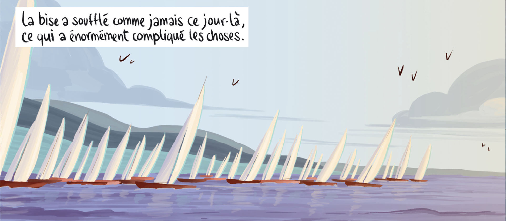 L’ouvrage, en vente ce week-end à la Société nautique de Genève et en librairies, retrace l’histoire de la régate à travers treize histoires de quelques pages, scénarisées par Patrick Mallet et chacune mise en images par un dessinateur différent, dans des styles très variés. Derib a par ailleurs signé la couverture.