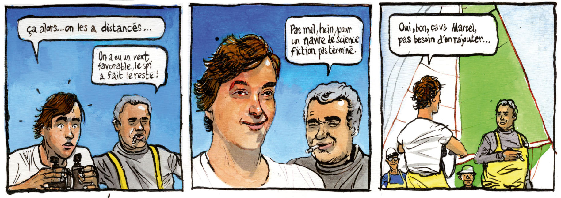 Raconter la grande histoire de la plus importante régate du monde en bassin fermé, c’est donc forcément raconter les petites histoires de celles et ceux qui l’ont pensée, façonnée, gagnée. A l’occasion de la 80e édition de la régate, les organisateurs ont, pour leur rendre hommage, fait éditer un album de bandes dessinées, dont les illustrations de cet article sont issues. Car au-delà des records, des statistiques, des réglages, le Bol d’or est une fantastique aventure humaine.