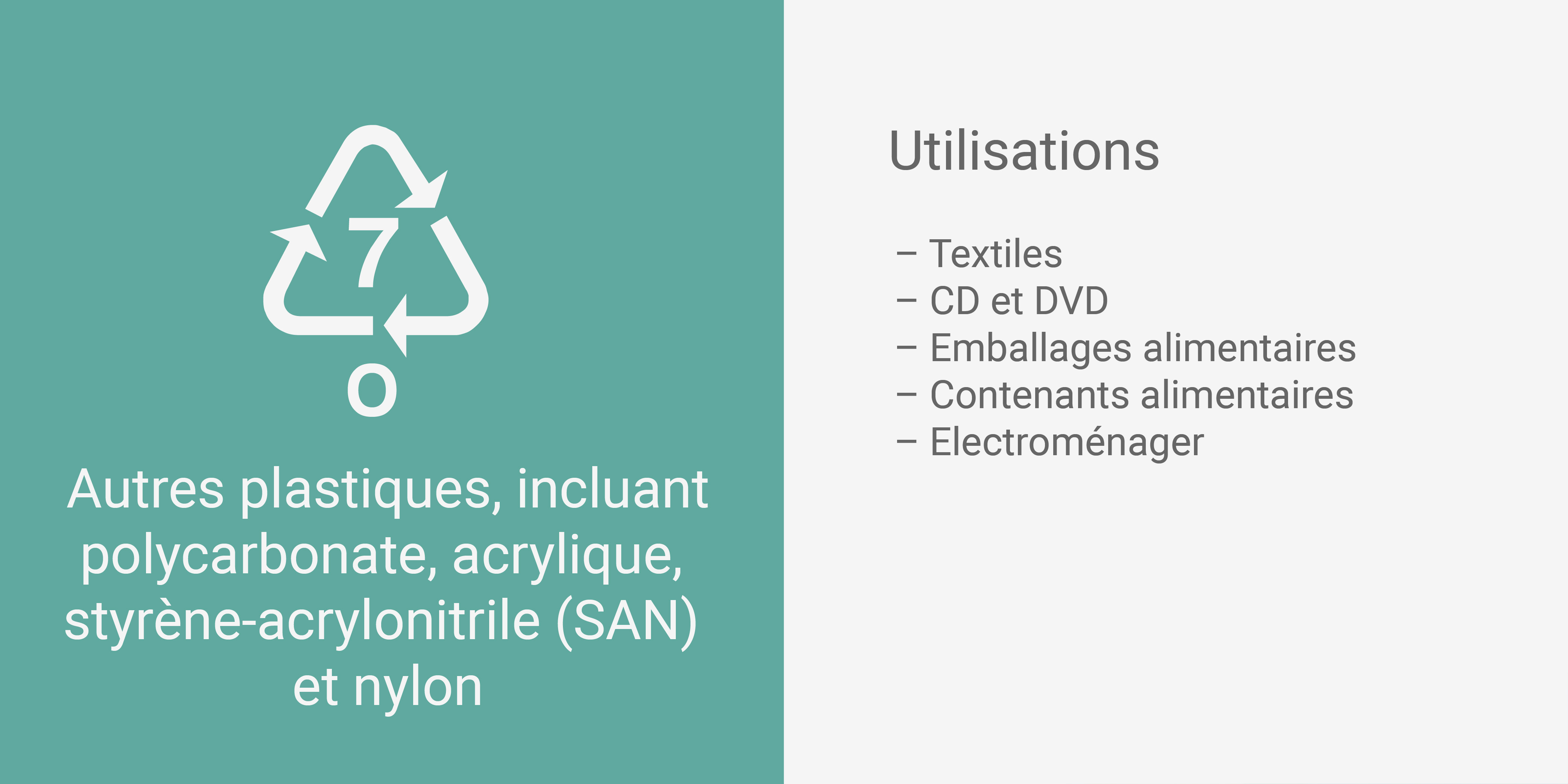 Avec de solides filières de valorisation et de recyclage, un tel appétit pour ces matières serait moins préoccupant. Mais rien n’est simple avec la fin de vie du plastique, qui n’est pas un matériau unique mais une famille comptant des centaines de membres. On en distingue sept grands groupes avec leurs propres contraintes de fin de vie, signalés par des pictogrammes avec trois flèches formant un triangle – logos qui laissent supposer, à tort, la possibilité d’un recyclage.