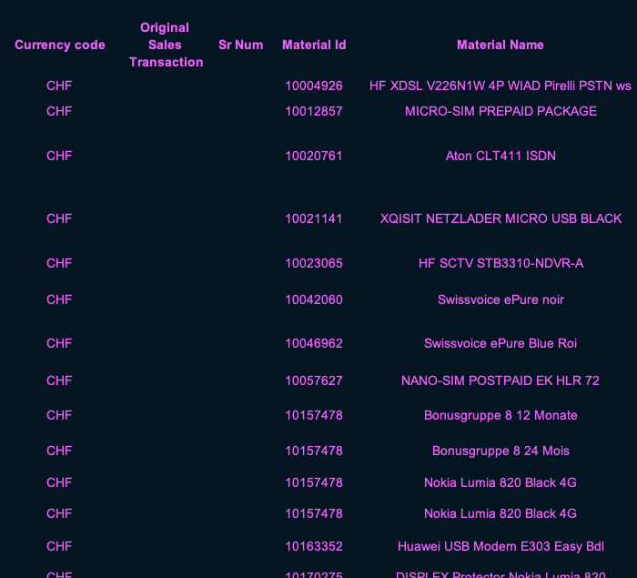 Un Nokia Lumia 820 Black 4G, un iPhone 4S 8GB Black ou encore un Swissvoice ePure noir: la liste contient des dizaines de références. S’agit-il de produits qu’elle aurait pu approcher pendant sa visite?