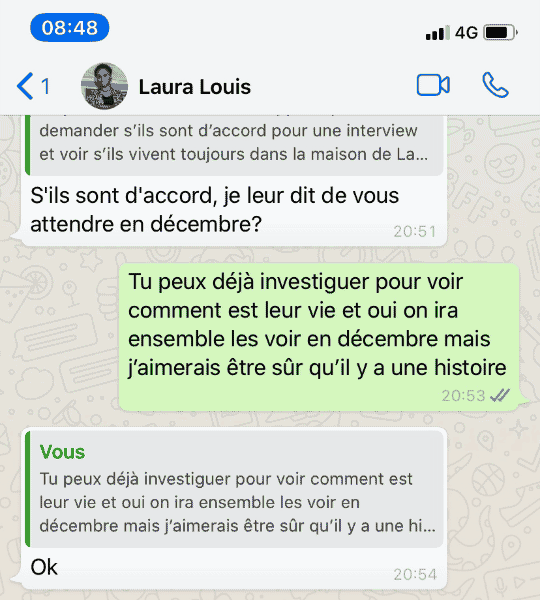 Un soir, je reçois un message sur WhatsApp. Il est signé de la journaliste Laura Louis, à laquelle j’avais demandé de retrouver Rosius.