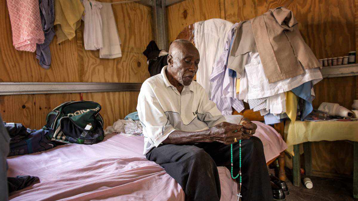 C’est la nièce de Rosius, Anthonine Dautruche, qui dirige la cour. Elle a le crâne presque rasé, elle prenait soin de Rosius quand il était là. Elle dresse le portrait d’un homme solitaire. «On l’appelait Toro, je ne me souviens pas pourquoi.» Pendant sa jeunesse, il travaillait à la brasserie nationale et vivait à Port-au-Prince. Il a eu 5 enfants dont un est mort avant lui; il n’avait pratiquement plus de contacts avec eux. Bien avant le séisme, il a été licencié et a rejoint son village natal, Palmiste-à-Vin. «Le séisme a totalement détruit la petite maison où il vivait. Un an plus tard, le 6 janvier 2011, Rosius a reçu cette maison en préfabriqué. A plusieurs reprises, depuis lors, les gens de la Croix-Rouge sont venus prendre des photos de Rosius sans qu’on sache ce qu’ils en faisaient.»