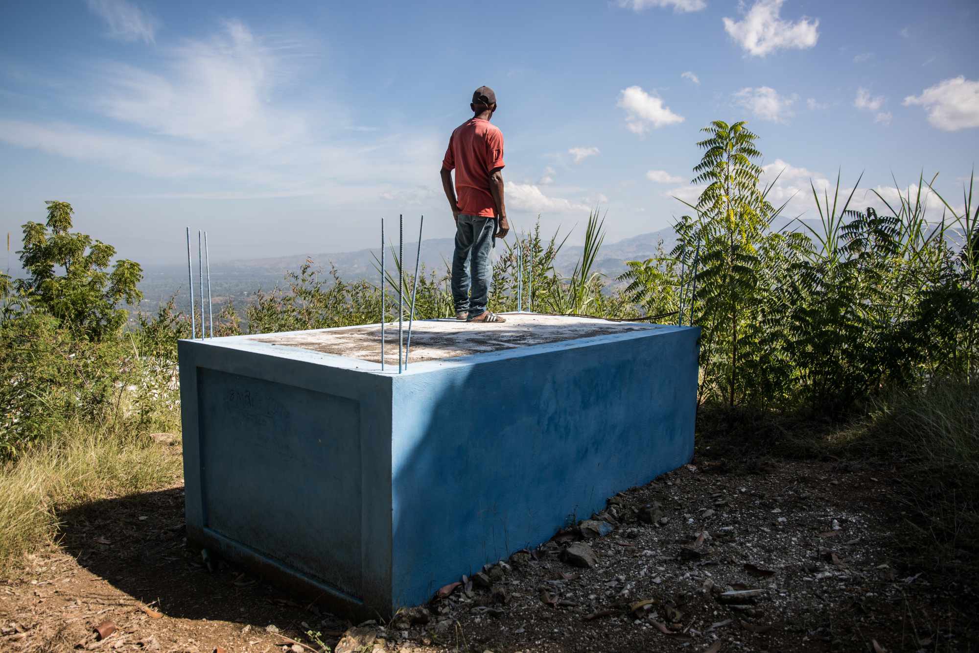 Comme sur la plupart des constructions en Haïti, on a laissé dépasser les fers à béton, cela donne l’impression qu’un deuxième étage se prépare. Sur la pierre, on a gravé au couteau la date de l’enterrement, 18 mai 2016, l’année de naissance, 1926, et l’âge du défunt, 90 ans. Mais pas son nom. La tombe embrasse toute la plaine en contrebas, jusqu’à la mer des Caraïbes.